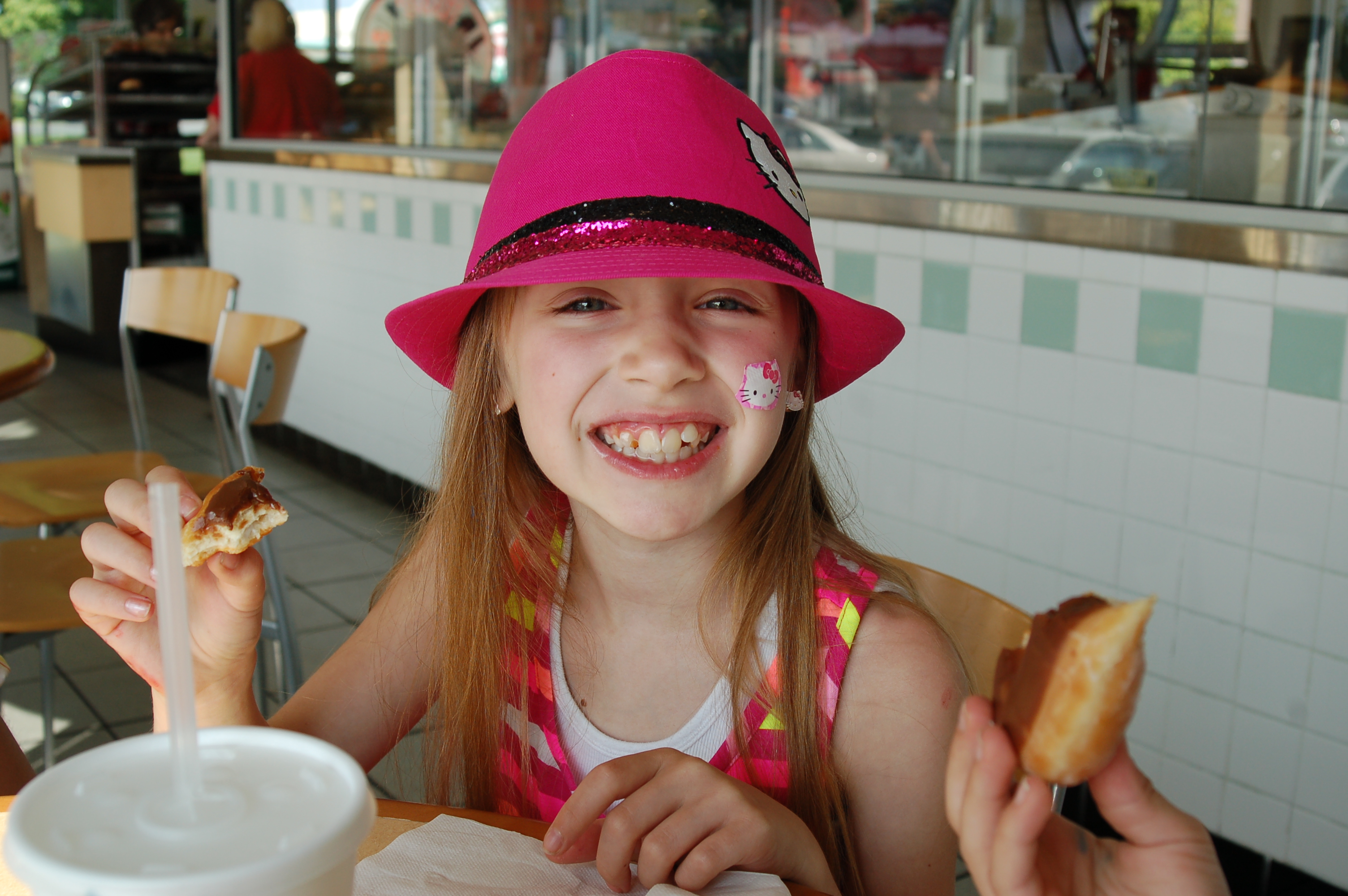 Ava did great in school this year, too! It was challenging to be a homeschooling mama for the first time, but for the most part, she made it fairly easy on me. She is a quick learner and she really seemed to enjoy all the time we spent together.Β I enjoyed it too. Here she is with her well earned “last day of school Krispy Creme donut.” Cute!